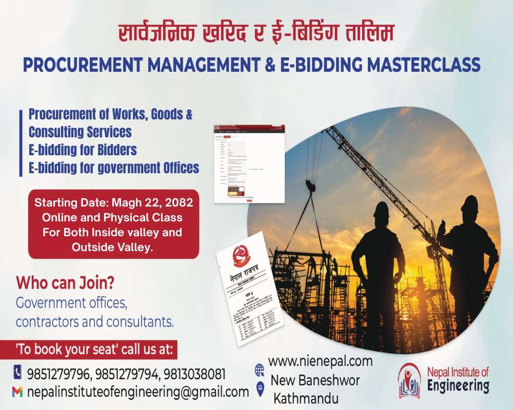 I have completed Estimation, Costing, and Land Valuation Training here at Nepal Institute of Engineering and had a very good learning experience here. The teaching methodology is excellent and the learning environment is very friendly. N.I.E is one of the best places for training related to civil engineering as well as other training courses. Thank you! N.I.E team